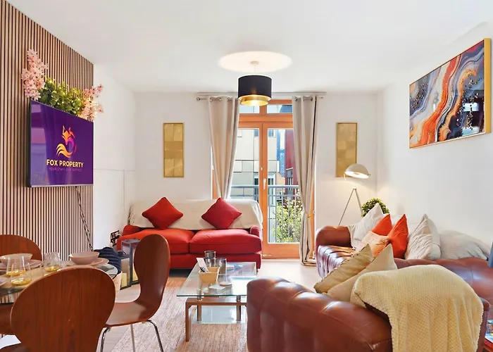 Disfruta de tus vacaciones en Birmingam en el apartamento Elegant Canalside 2Br Mailbox Stay With Free Parking - Sleeps 6 Birmingam. Ideal para quienes buscan una experiencia auténtica, está situado a tan solo 1 km del Edificio Selfridges y a poco más de 5 minutos a pie de los Jardines de la Paz. Los huéspedes pueden disfrutar del Wi-Fi.